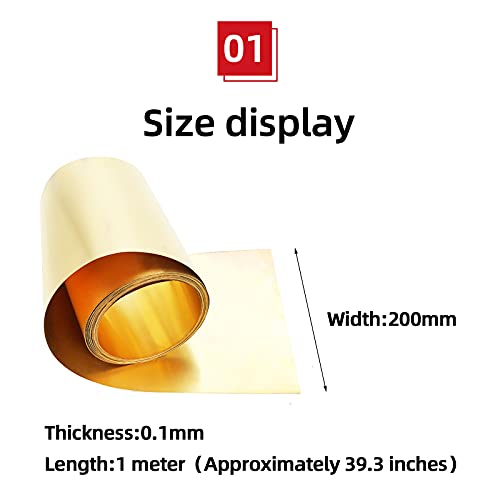 SHHMA Lamina Ottone Lamiera in Foglio Piatto di Metallo Piastra Rame per La Produzione di Decorazioni, Spessore 0,1 Mm,Width:200mm