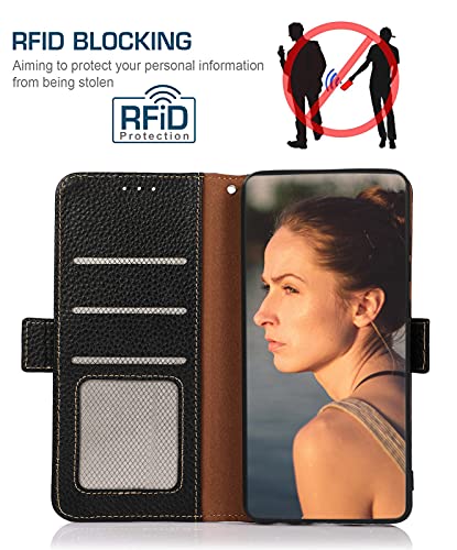 SHIEID Cover per ASUS Zenfone 8, ASUS Zenfone 8 Supporto Stand ed Cover di Vera Pelle Case,Flip Vera Pelle Custodia per ASUS Zenfone 8-Nero