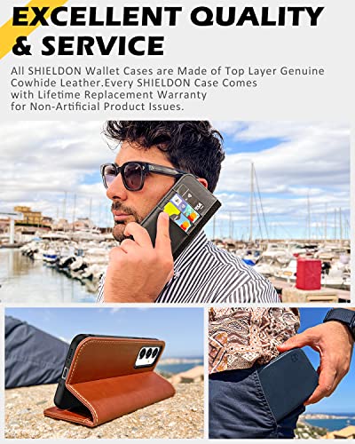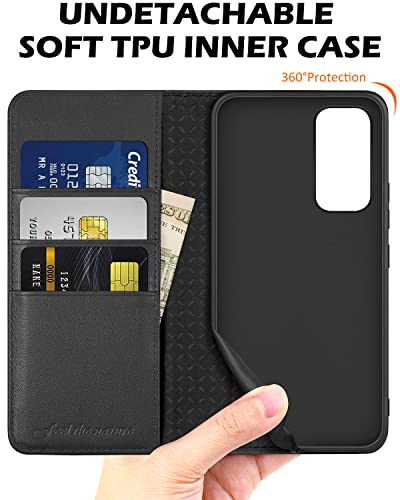 SHIELDON Cover per Galaxy A54, Custodia Vera Pelle Flip Caso Magnetico Portafoglio Slot Schede Blocco RFID TPU Antiurto Cover Cavalletto Compatibile con Galaxy A54 (6,4" 2023), Nero