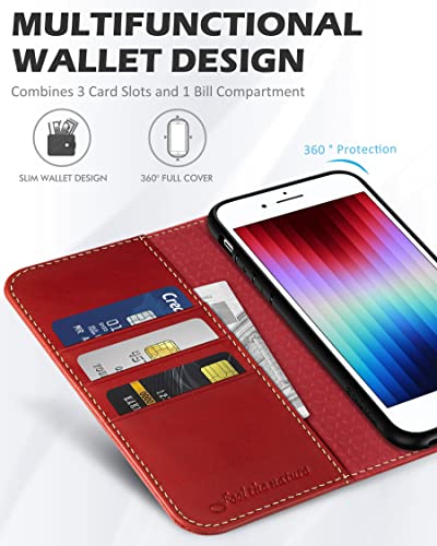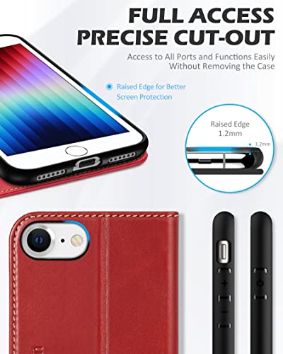 SHIELDON Cover per iPhone SE 2020, Custodia per iPhone 8, Cover per iPhone 7, Custodia Vera Pelle Resistente Slot Schede Stile Libro Chiusura Magnetica Cavalletto per iPhone SE2/8/7 - Rosso retrò