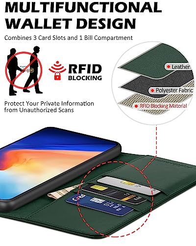 SHIELDON Custodia Galaxy S21 FE 5G, Cover Portafoglio Slot per Schede Blocco RFID Portacarte Vera Pelle TPU Antiurto Supporto Stand Flip Cover a Libro per Galaxy S21FE 5G (6,4" 2022), Verde Notte
