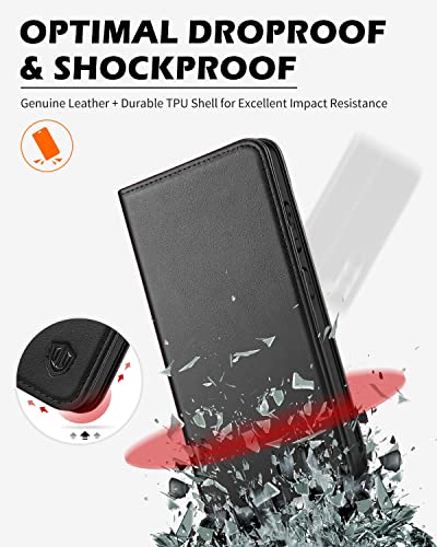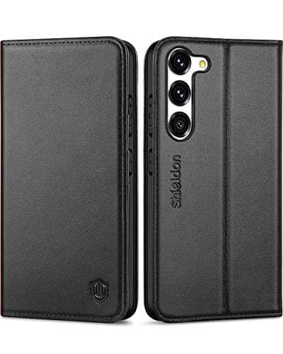 SHIELDON Custodia per Galaxy S23, Cover Vera Pelle Portafoglio Antiurto TPU Blocco RFID Slot Schede Cover Cavalletto Protezione Flip Caso Magnetico Compatibile con Galaxy S23 (6,1" 2023), Nero
