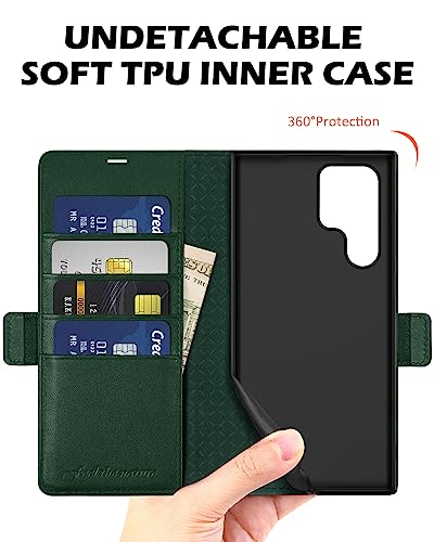 SHIELDON Custodia per Galaxy S22 Ultra, Cover Vera Pelle Portafoglio RFID Blocco Slot Schede Cover Cavalletto TPU Antiurto Chiusura Magnetica Compatibile con Galaxy S22 Ultra (6,8" 2022), Verde Notte