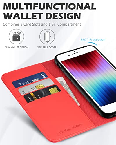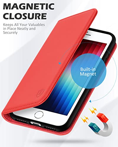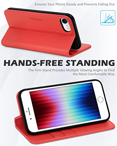 SHIELDON Custodia per iPhone SE 2022, Phone SE 2020, Cover per iPhone 8, per iPhone 7, Portafoglio Chiusura Magnetica Vera Pelle Protezione Cover Cavalletto Slot Schede per iPhone SE3/SE2/8/7, Rosso