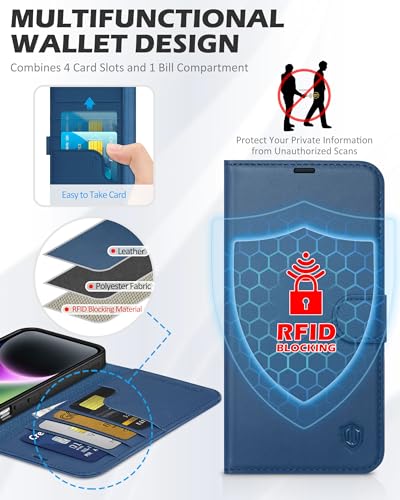 ✪ DESIGN A PORTAFOGLIO E RFID - Custodia per iPhone 14 Pro Max ha 4 tasche per carte e 1 tasca laterale adatta per riporre carte ID, patente, carte di credito e contanti. 4 tasche per carte con schermatura RFID bloccheranno le frequenze RFID e proteggeranno i tuoi dati personali dalla lettura da parte di lettori elettronici non autorizzati. Le tasche esterne appositamente progettate senza schermatura RFID saranno convenienti per la scansione delle carte perfetto per la scansione delle carte