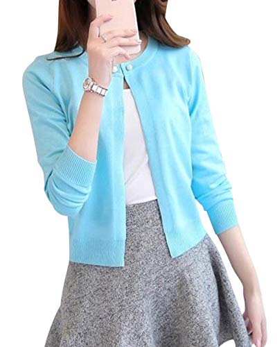 ShiFan Cardigan A Maglia Donna Corto Leggero Coprispalle Giacca Top Maniche Lunghe Eleganti Azzurro L