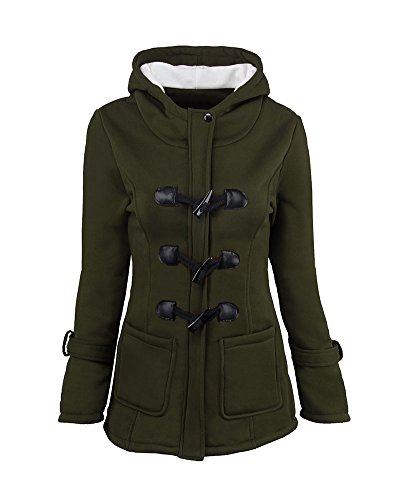 ShiFan Donna Casual Giacca Cappotto con Cappuccio Giacche Abbottonato Parka Invernale Outwear Verde 2XL
