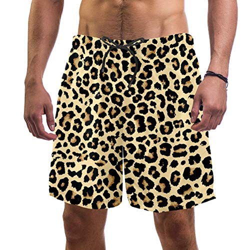 Shiiny - Costume da bagno da uomo, motivo leopardato, ad asciugatura rapida, estivo, surf, spiaggia, con fodera in rete, taglia L Multicolore XL