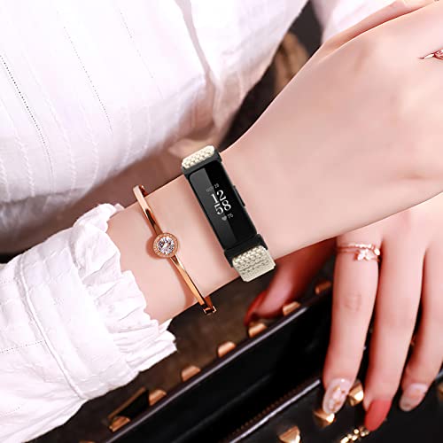 Shijzwd Cinturino elastico regolabile compatibile con Fitbit Inspire 2/Fitbit Inspire/Inspire HR, morbido cinturino sportivo in nylon traspirante, elastico, di ricambio, per donne e uomini (nero + bianco sporco)