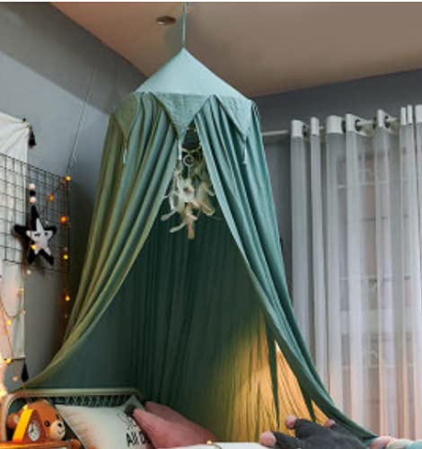 SHIKUN Tenda da letto rotonda in cotone con zanzariera a baldacchino Tenda da letto con bandiera nappa Tenda per bambini Decorazione per ragazzi, ragazze, letto per bambini