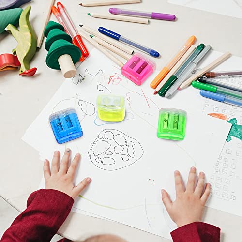 SHILIPAIJC Temperamatite, 4 pz manuale doppio fori colorati temperamatite, temperamatite portatile con coperchio per bambini studenti