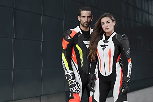 SHIMA MIURA RS Tuta moto donna - Tuta in pelle 1 pezzo, sportiva, da corsa, ventilata con cursori per spalle e ginocchia, protezioni CE per schiena, spalle e gomiti (34, Bianco/Fluo)