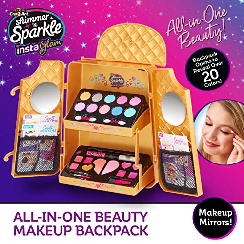 Glam self, mondo glam con il shimmer e scintillio instaGlam tutto in un unico set di zaino per il trucco di bellezza. Il set di cosmetici include oltre 20 colori con vassoi pieghevoli per un facile accesso. Caratteristiche;