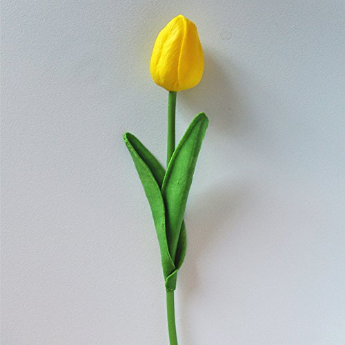 SHINE-CO 10 Pezzi PU MINI Tulipano Fiore Artificiale Vero Tocco per La Decorazione Domestica per La Cerimonia Nuziale(Giallo)
