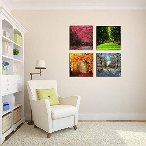 SHINERING Quadri Astratti Moderni Immagini di Gruppi artistici Quattro Stagioni Alberi Poster su Tela Decorazioni per la casa per Soggiorno Senza Cornice 4 Pezzi