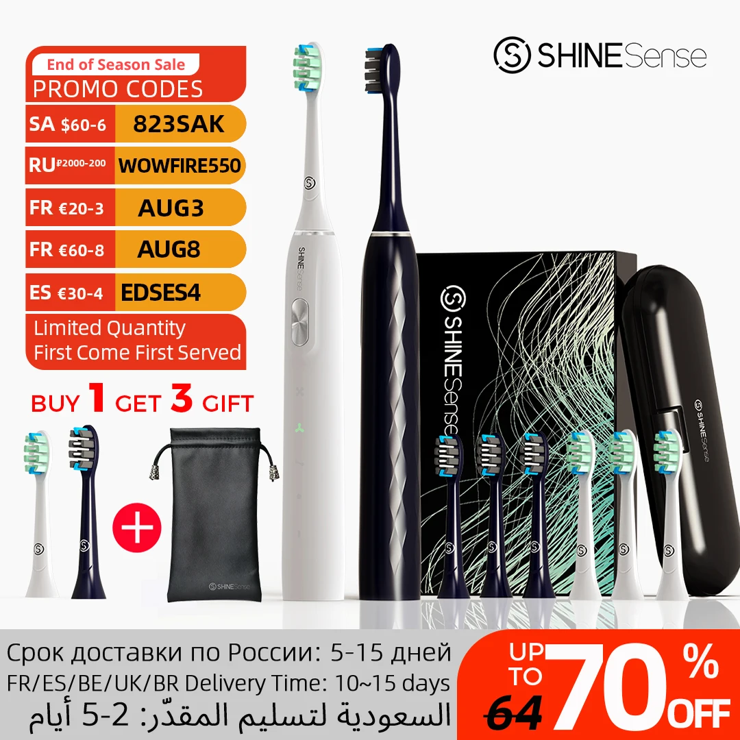 ShineSense STB800 Sonic Electric Toothbrush Adult USB Rechargeable Waterproof with Travel Bag Brush Head for xiaomi mijia