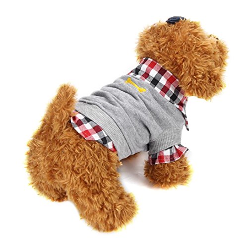 Shinmax Cane Gatto Griglia Maglione Puppy cappotto caldo T-shirt Abbigliamento Pet POLO shirt cani Abbigliamento Plaid modello osseo comune Banda maniche comune Pet Dog Cat Puppy Abbigliamento Abbigliamento T-shirt O-Collo senza maniche striscia di piccolo animale domestico della camicia del cane del cucciolo del gatto morbida Della Abiti (S (Indietro 11.81 "Busto 17.72" collo 13.39 "), Grigio)