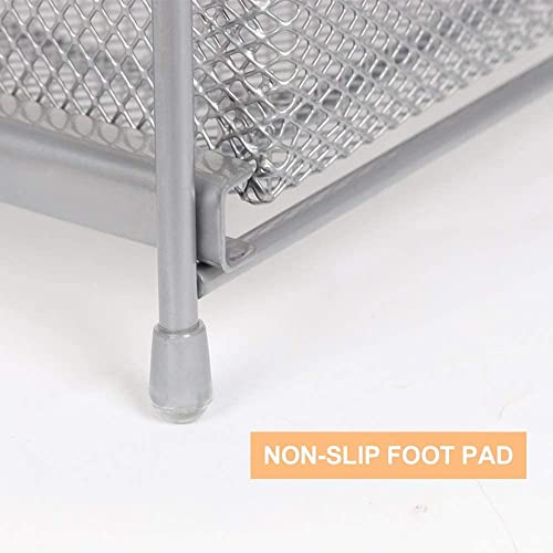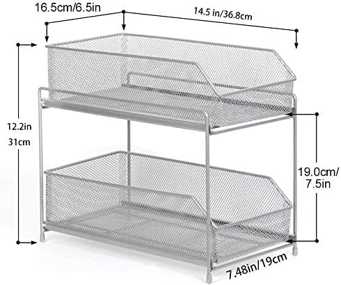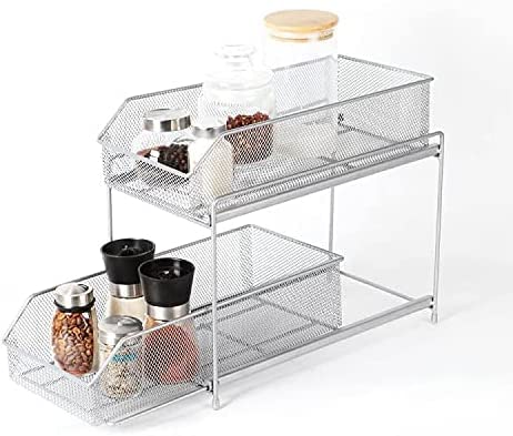 Shinoske Scaffale portaoggetti per armadietto, Organizer Sottolavello Cucina, con 2 cassetti scorrevoli, per Ufficio Cucina Bagno, Argento
