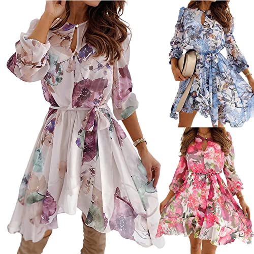 Materiale del vestito: Poliestere Stile: Moda Tipo di adattamento: Sottile Genere: Donne Tipo del collare: O Collo Lunghezza del vestito: Mini abito Stagione: Primavera, Estate Lunghezza della manica: Maniche lunghe Caratteristiche: Stampa floreale, Morbido, Lace-up