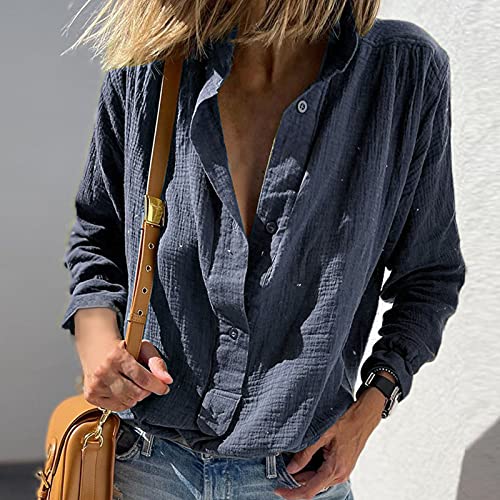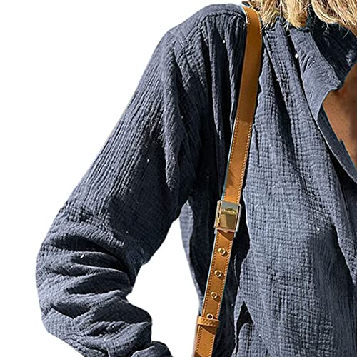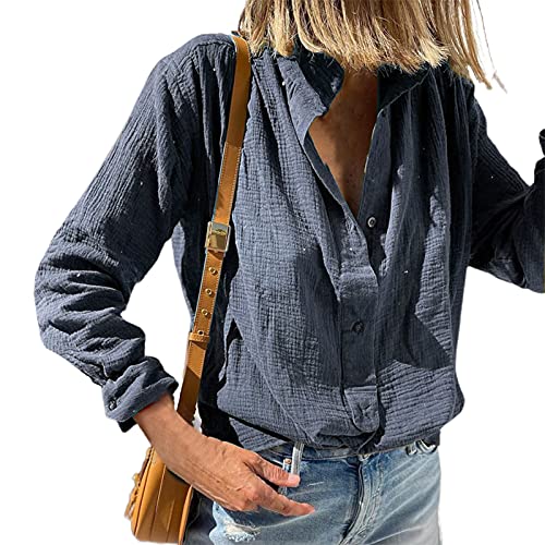 SHINROAD Donne Camicia Tinta unita Camicetta monopetto Autunno Risvolto Manica Lunga Camicetta Top Streetwear Donna Accessorio Grigio Blu S
