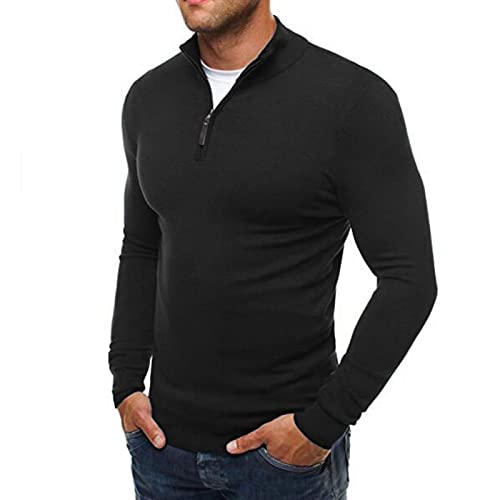 SHINROAD Maglione per la primavera avvicinabile e facile da andare Stand Collare Tinta unita morbida e resistente all'usura Cerniera Slim Autunno Maglione per uso quotidiano lavoro casa Nero XL