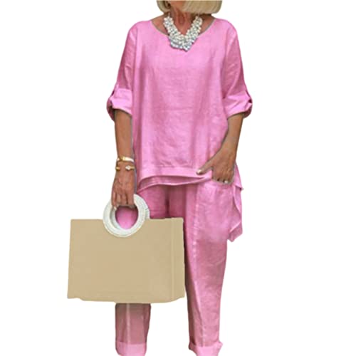 SHINROAD Top pantaloni da donna tuta T-shirt Pantaloni Set orlo irregolare Estate Elegante donna allentata Outfit Daily Wear Rosa 4XL