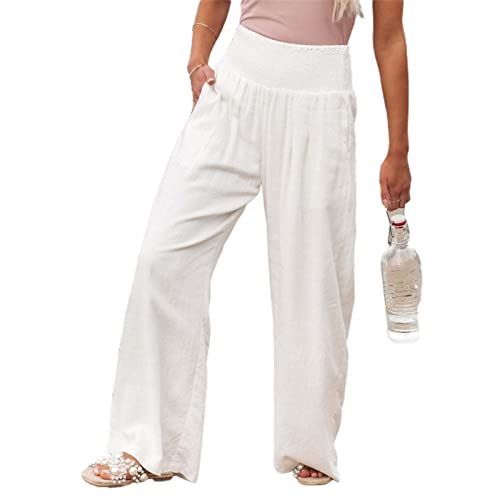 Pantaloni Materiale: Cotone Lino Stile: Casual Tipo di Vestibilità: Largo Genere: Donna Vita: Vita Alta Stagione: Primavera, Estate Lunghezza Pantaloni Lunghezza: Lunghezza Pantaloni Caratteristiche: Gamba larga, Elastico in vita, Morbido