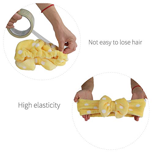 Shintop capelli trucco - lovely morbido pile elastico fascia per spa doccia maschera e lavaggio viso (rosa a pois, giallo)
