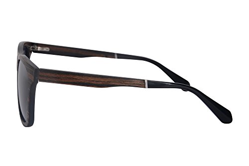 SHINU Occhiali da Sole Polarizzati Fatti a Mano di Bambu Occhiali da Sole Occhiali Temple Wood e Frame Vetri di Legno con Case-SH73007 (ebony layers, grey)