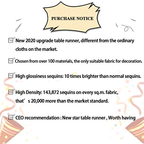❤ NOTA SULLA COPERTURA DEL TAVOLO CON PAILLETTES: durante il taglio dei runner da tavolo con paillettes, che avranno alcune gocce di paillettes dal pacco, quindi quando estrai la tua copertura del tavolo glitterata dal tuo pacchetto, se ci sono pochi paillettes cadono, è il FENOMENO NORMALE, non il problema di qualità, per favore scuoterlo nel bidone della spazzatura prima dell'uso.