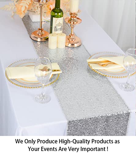 ShinyBeauty - Runner da tavola in Argento Scintillante, 30 x 180 cm, con Paillettes Rotonde Glitterate per Runner da tavola per Feste, Matrimoni, Banchetti o Decorazioni