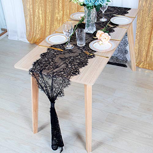 ShinyBeauty Runner da Tavolo in Pizzo Nero 16x120 Pollici Runner da Tavolo con Motivo Floreale di Classe per Decorazioni per Matrimoni rustici