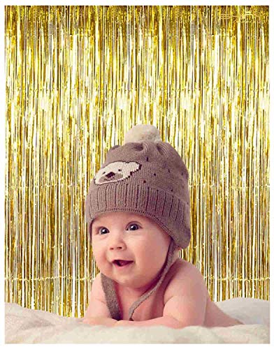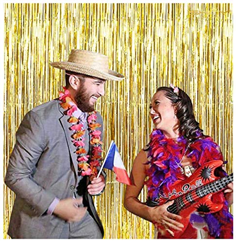 ShinyBeauty - Tenda a frangia in lamina metallica brillante da 0,9 x 2,4 m, nera, perfetta come decorazione per matrimoni, feste di compleanno, eventi, spettacoli, Gold, 3FTx8FT