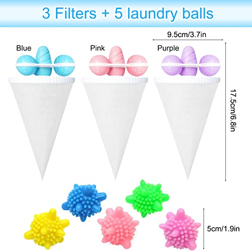 Shinybox Filtro dei Capelli Della Lavatrice, 3 Pezzi Cattura Peli Lavatrice e 5 Pezzi Palla Per Bucato, Sacchetti Filtro per Lavatrice per Rimuovere i Capelli, Togli Peli Animali