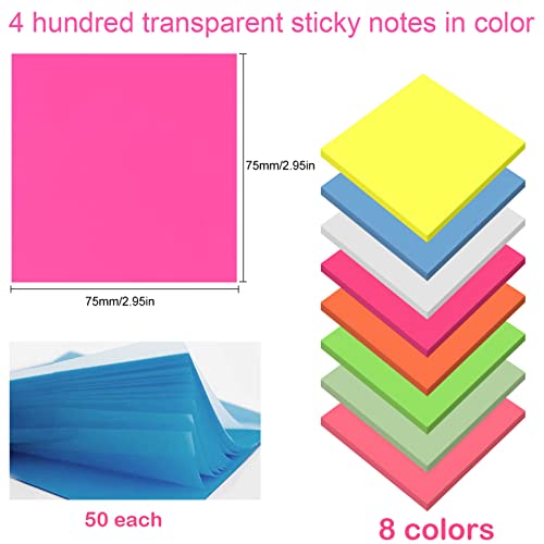 Shinybox Foglietti Adesivi Trasparenti, 400PCS Note Adesive Trasparenti, 8 Colori Trasparenti, Riutilizzabile Foglietti Adesivi, Trasparenti Adesivi Sticky Notes per Scuola e Ufficio