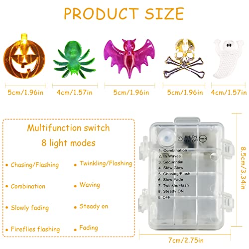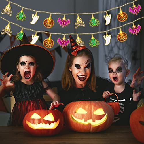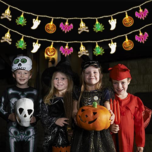 Shinybox Halloween Luci Stringa, 3M 20LEDs Luci di Halloween Zucca Fantasma Ragno Pipistrello Scheletro, Catena di luci decorative per Halloween, Decorazioni di Halloween per Interni ed Esterni