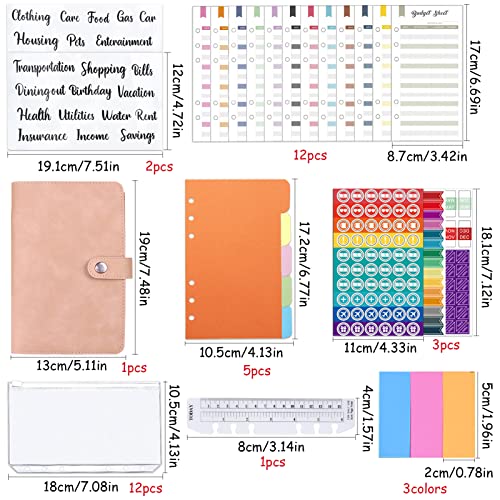 【Contenuto della confezione】 Copertina per raccoglitore in pelle PU a 6 anelli A6, 12 buste per il budget, fogli per budget da 12 pezzi, 1 righello, adesivi per categoria 3 pezzi, divisori per raccoglitori a 5 colori e 2 adesivi.