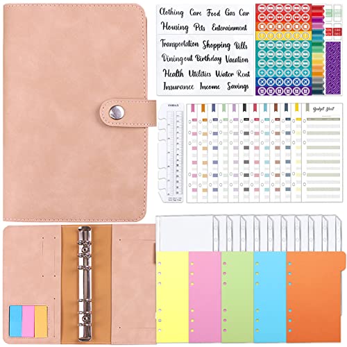 Shinybox Raccoglitore di Bilancio, Raccoglitore ad 6 Anelli, Portadocumenti in Pelle PU con 12 Buste a Cerniera, 12 Fogli di Bilancio, per Budget di Contanti Organizzatore di Buste Casa, Ufficio