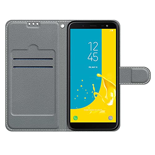 Galaxy J6 2018/J600 custodia ha slot per schede e una tasca per contanti, puoi mettere una carta di credito, una carta d'identità, ecc. Combina la custodia del telefono e il portafoglio. Design del treppiede, angolo di visione perfetto, adatto per guardare film o chat video, mani libere quando film Guardando.
