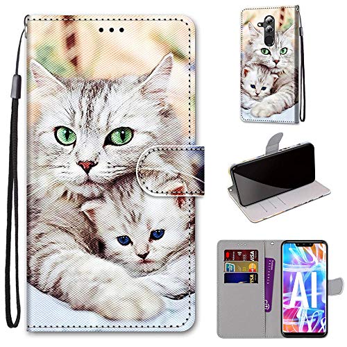 ShinyCase PU Pelle Caso per Huawei Mate 20 Lite Chiusura Magnetica Telefono Custodia Protettiva Flip Case AntiGraffio Portafoglio Cover Supporto Custodia per Huawei Mate 20 Lite,Gatto e Gattino