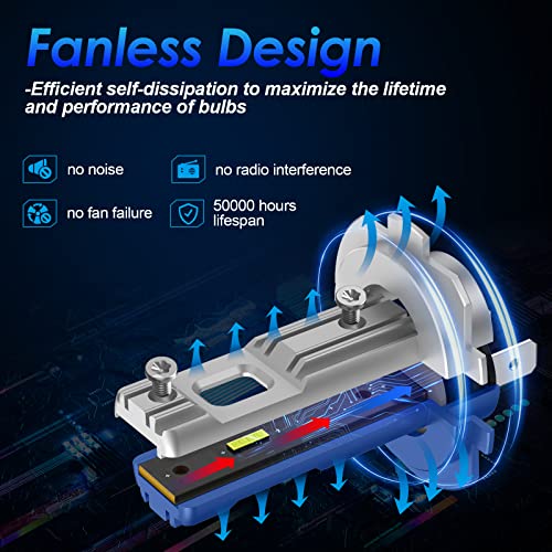 【Durata della vita di 50000 ore】: il H7 Led lampadine ha un design senza ventola, che può evitare che rumore e polvere penetrino all'interno e nessuna interferenza radio. Il design compatto all-in-one con materiale in alluminio di alta qualità per tutto il corpo, chip led CSP superiori, che fornisce una dissipazione del calore rapida e stabile per massimizzare la durata e le prestazioni delle lampadine a led