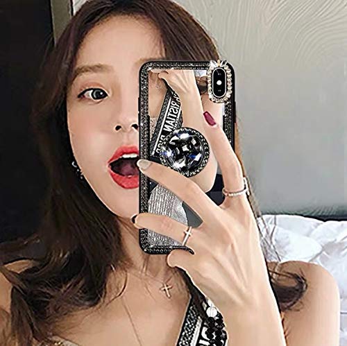 Shinyzone Specchio Custodia per Samsung Galaxy S21,Cover Specchio con Ring 360°Anello Girevole,Brillante Diamante Bling 3D Nero Strass Copertura Posteriore Silicone Morbida