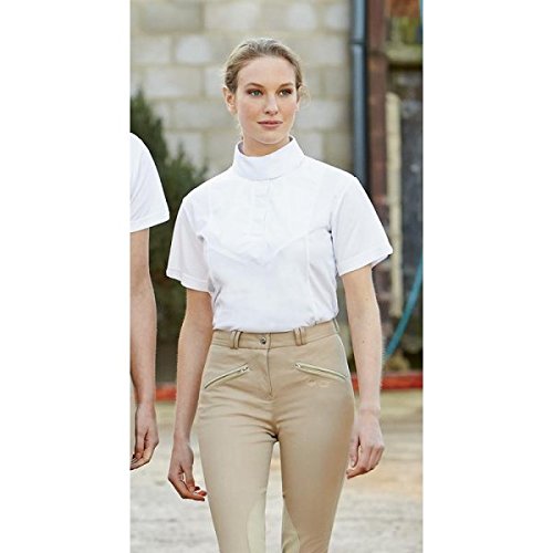Shires Ladies Maglietta a Maniche Corte, per Competizione, Colore: Bianco/Rosa