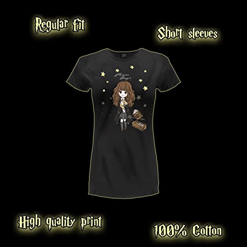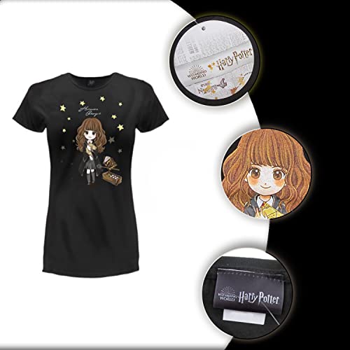 T Shirt Harry Potter Hermione Granger Strega Modello da Donna Ufficiale con Stampa Frontale 100% Cotone Nera Taglie per Donna Ragazza (XS)