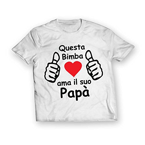 T Shirt Maglia Maglietta Bambino Festa del Papa' I Love Papa' Maglia Bianca Grafica Bimba 3-4 Anni