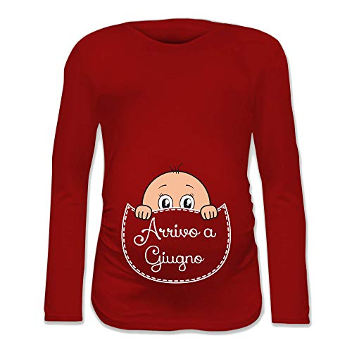 T Shirt Maglia Premaman in Arrivo a Giugno Rossa Maschietto L Manica Lunga