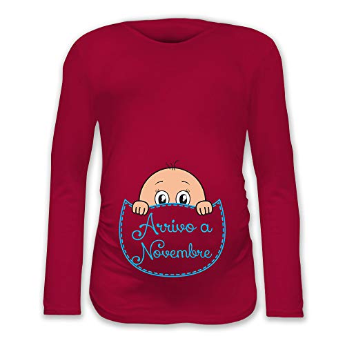 T Shirt Maglia Premaman in Arrivo a Novembre Fucsia Maschietto M Manica Lunga