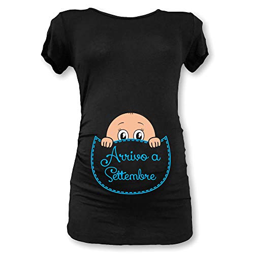T Shirt Maglia Premaman in Arrivo a Settembre Nera Maschietto S Manica Corta
