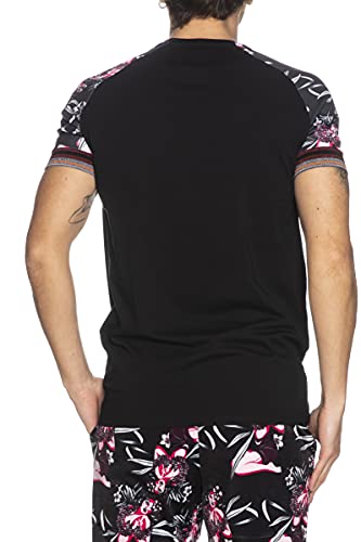 T Shirt SikSilk da Uomo Nera/Stampa Tropical Floreale Nera Rosa