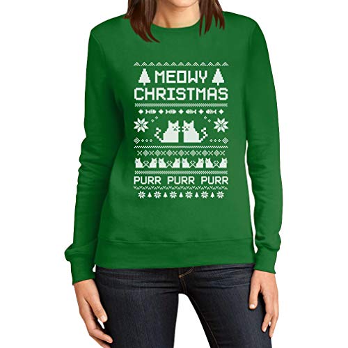 Shirtgeil Meowy Maglione di Natale con Gattini Felpa da Donna Large Verde